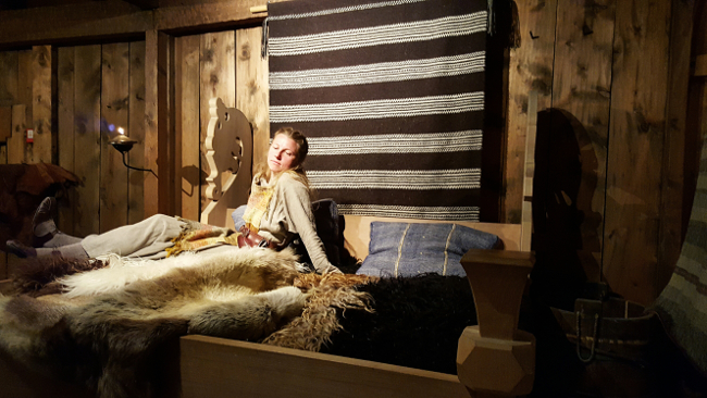 Seuraava päivä vietettiin viikingimuseossa: Lofotr. Tutustuin moniin käsityöihmisiin, sekä lukuisiin tuotteisiin. Siihen aikaan oli jokavuotinen vikingifestivaalitapahtuma, johon kerääntyy kaikki teemasta kiinnostuneet ihmiset. Kävin nahkapajassa, kokeillin perinteistä viikingisänkyä, istuin juhlapöydän ääressä, sekä ammuin jousella, että ennustin tulevaisuutta viikingiläisten tapojen mukaan.